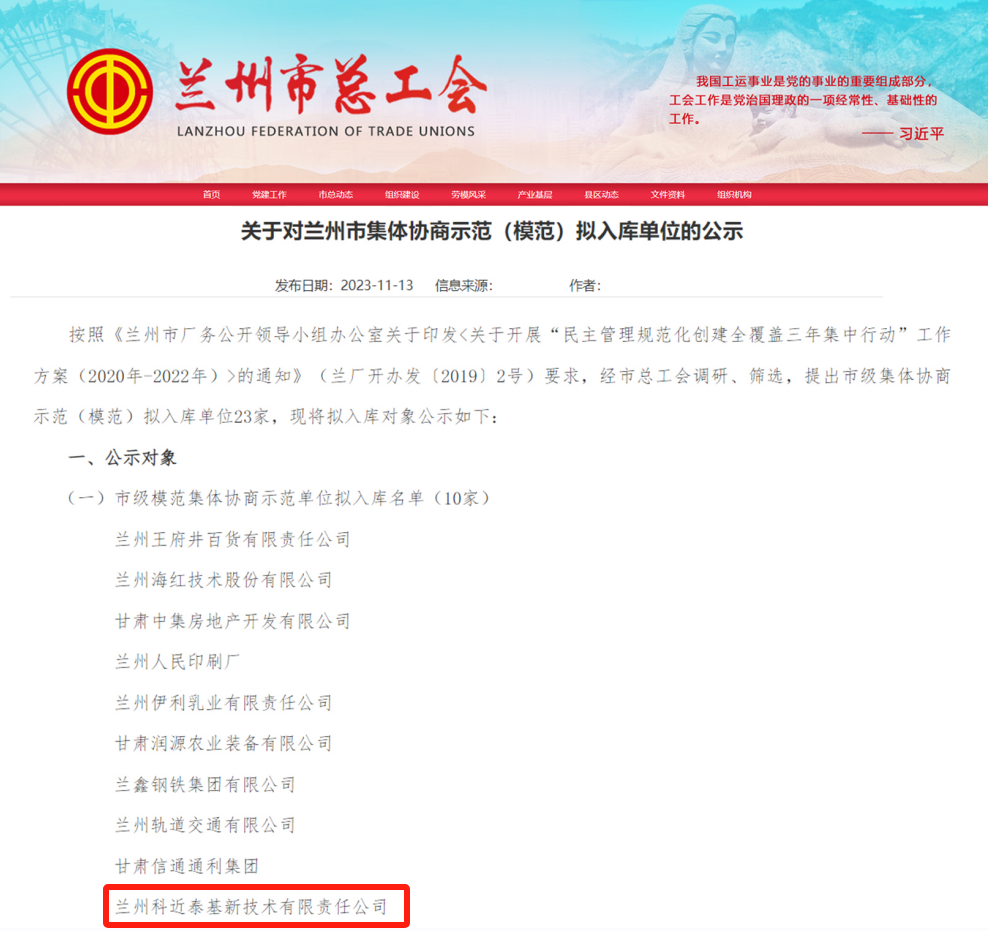 关于对兰州市集体协商示范 (模范)拟入库单位的公示