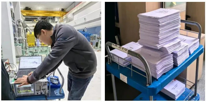 此次杭州的碳原子治疗系统检验任务于2024年3月正式启动,时间紧,任务重,市器检院又面临着多台大型质子重原子同时召开检验工作这一复杂局面。为快速解决这一难题,市器检院总结了之前碳原子治疗系统的检验经验,重点分析梳理了此台设备与前四台已完成碳原子治疗系统的异同,将检验重点聚集在不同的项目,如用点扫描方式替代均匀扫描方式、引入滑轨CT图像引导定位装置等方面应关注的基本性能和抗扰度试验符合性判据。经院领导统筹调度,周密安排,优化过程,多线并进,检验工程师前期充分准备,现场加班加点,全力保障了该台碳原子治疗系统检验工作的加速推进。市器检院派出检测人员8名,历时37天,克服重重困难,优质高效地推进了杭州碳原子治疗系统检验任务。